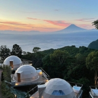 駿河湾越しの富士山ビューと壮大なパノラマの夕景で過ごす特別なグランピング