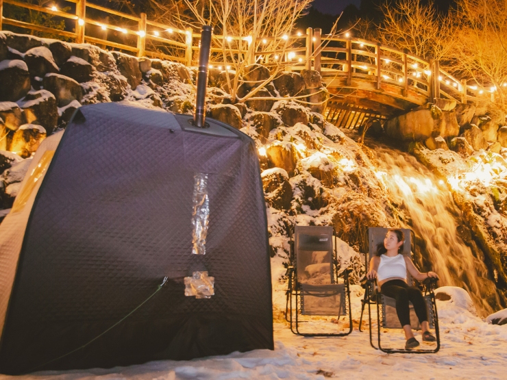 冬の「ザランタンあば村」でしか味わえない、特別なアウトドアサウナ体験。大切な人との思い出作りにも最適な貸切サウナで、心身ともにリフレッシュできる1泊2日。