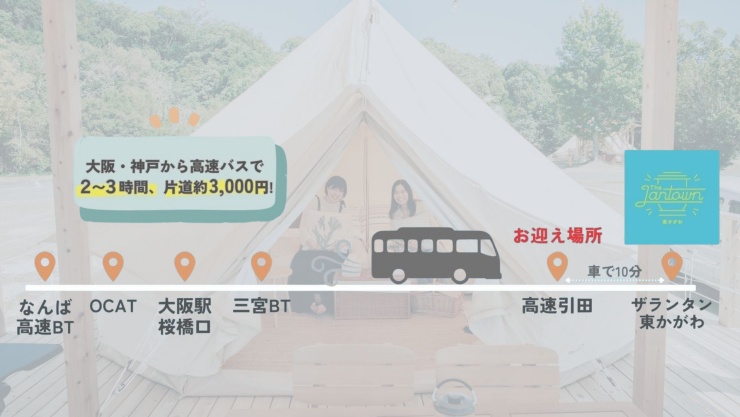 JR引田駅、または高速バス停「高速引田」から送迎を行っているため、車がなくても気軽に訪れることができます♪