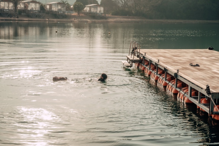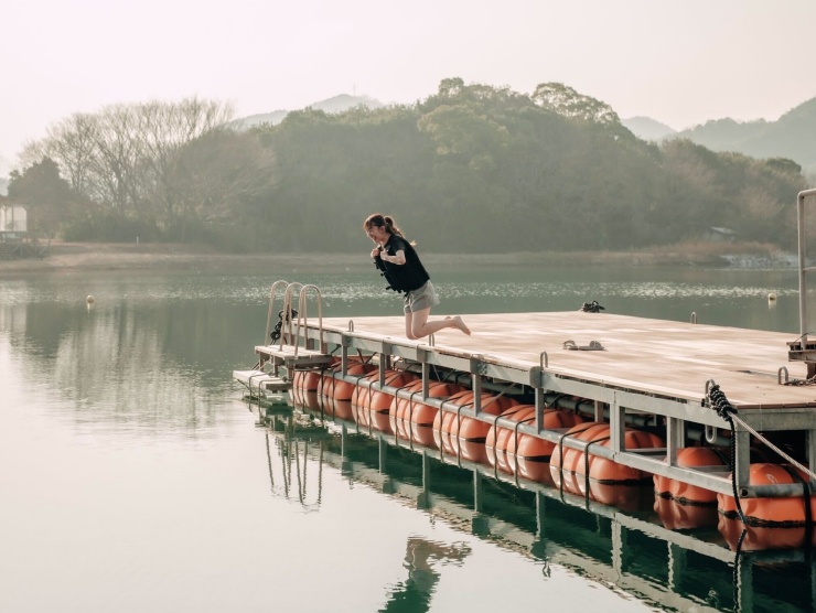 自然に囲まれながら温まったら、桟橋から海へダイブ!!