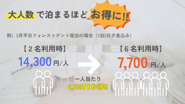 人数が多いほどお得に泊まれて、友達同士やサークル仲間との春休み旅行にもぴったりです。
