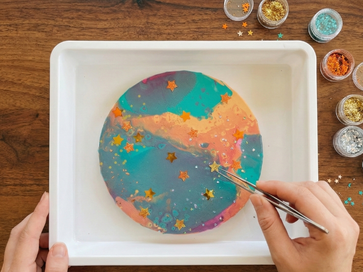 静かな空間で、色が混ざり合う様子を眺めながら、