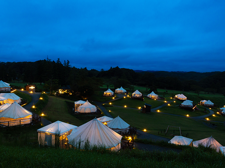 福島県いわき市、スパリゾートハワイアンズ併設のグランピング施設『マウナヴィレッジ』。