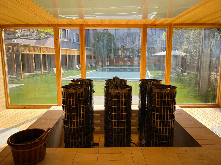 サウナ内は電気ストーブを使用しているため、じんわりと身体を温めながら心地よい発汗を体感できます。