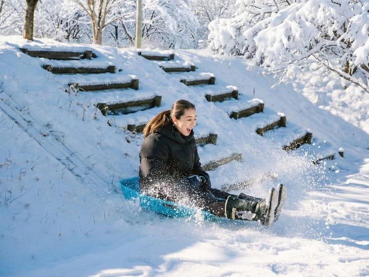 他にもソリなどの雪遊びセットの貸出も行っています。雪の中をソリで駆け下りたり、雪だるまを作ったりとお子様も大喜びすること間違いありません。
