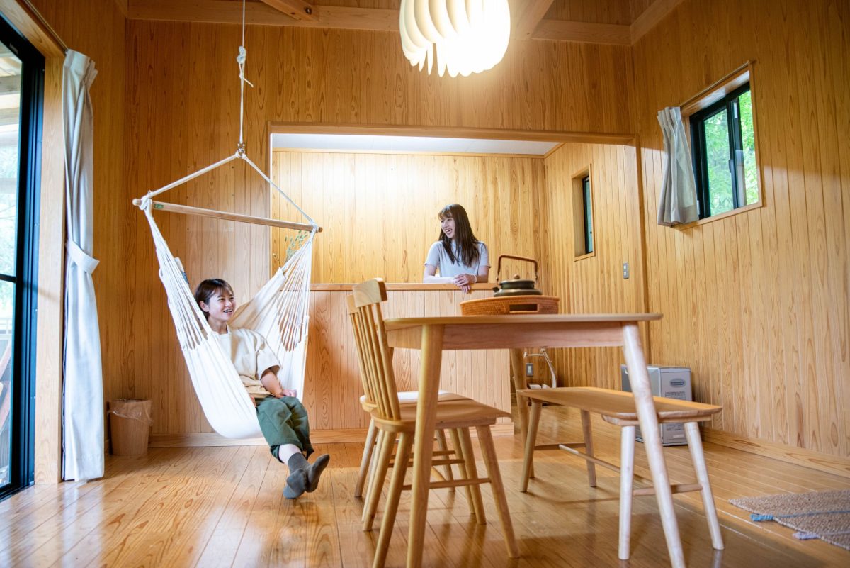 室内はリビング・ダイニングがあり広々とした空間!ダイニングにはハンモックが…!!