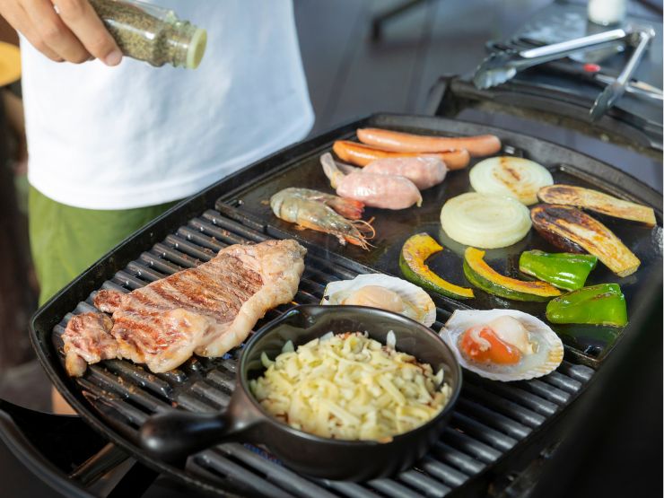 アメリカのガスグリルを使用しているので、外はこんがり、中はジューシーなお肉に仕上がります。