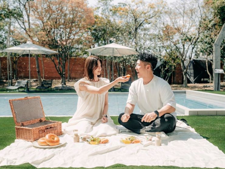 お好きな時間にフロントで受け取り、お部屋でいただくことはもちろん、中庭やテラスの野外でも食べることができます。