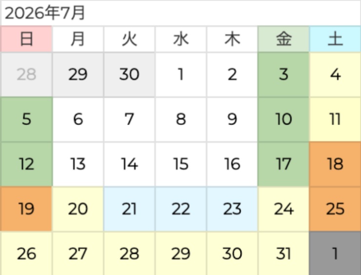 ⚪︎7月予約:2026年4月1日18:00~ 受付開始