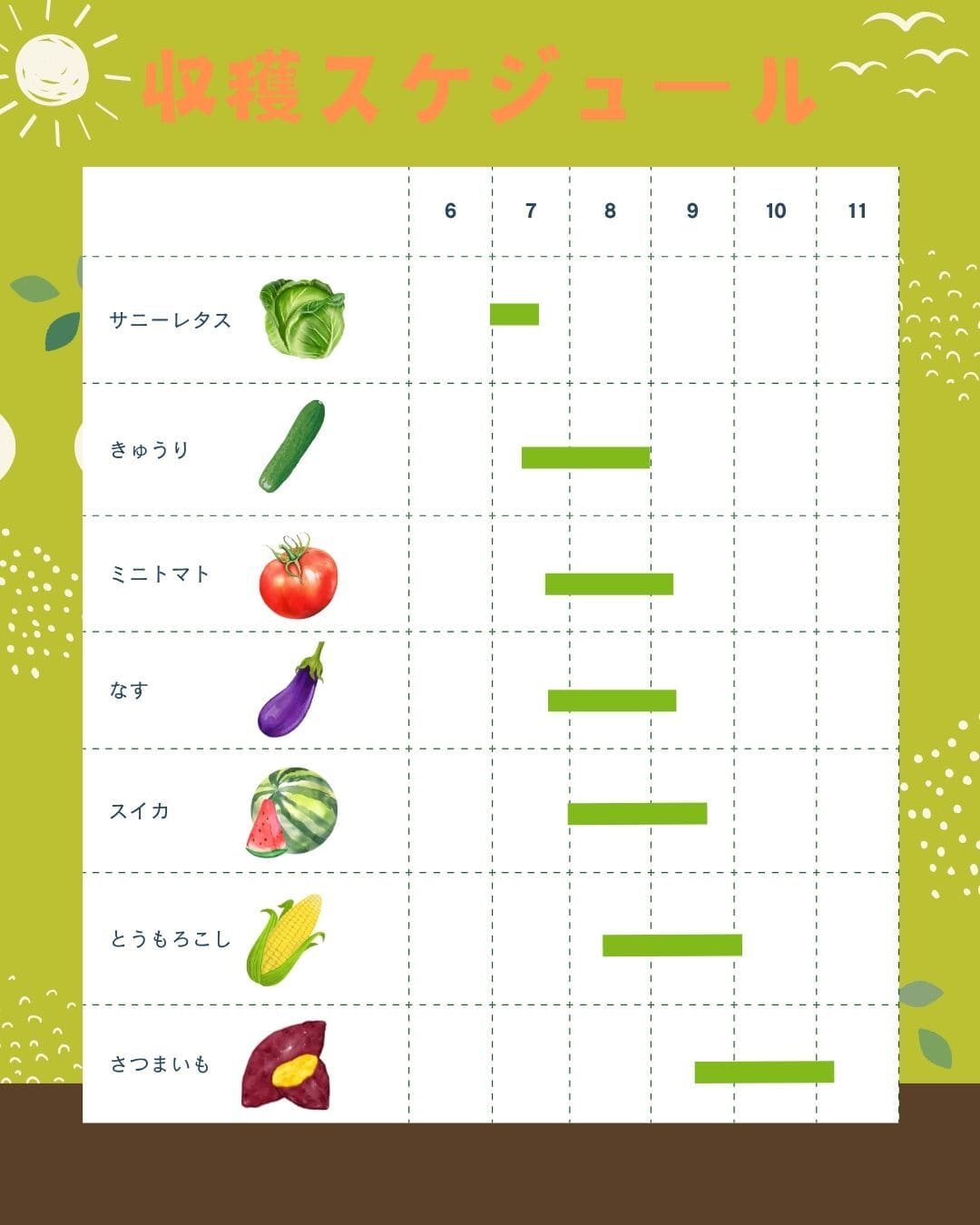 ※天候により、作物の発育が異なります。当日、収穫できない場合もございますので、ご了承ください。