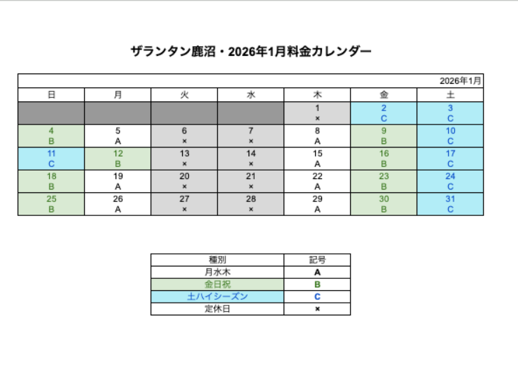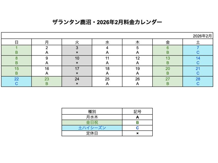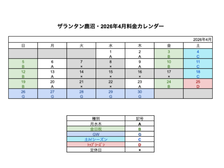 料金詳細については、ザランタン鹿沼公式HPをご覧くださいませ。