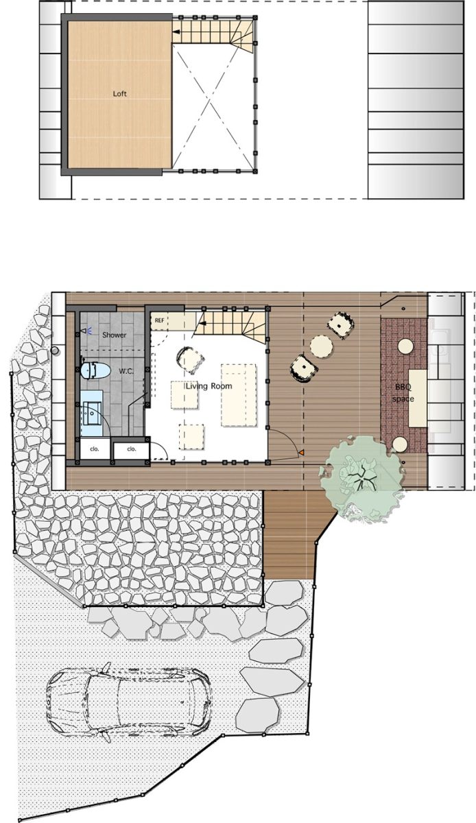屋根から外壁にかけてコールテン鋼を使用した独創的なデザインが名前の由来です。内部と外部が自然につながるように設計され、陽の光がたっぷり差し込む開放的な空間は、快適さと非日常を同時に味わえる特別な場所。なかでも「ColKoti201」には五右衛門風呂を備え、夜は満天の星空を眺めながら極上のひとときをお過ごしいただけます。