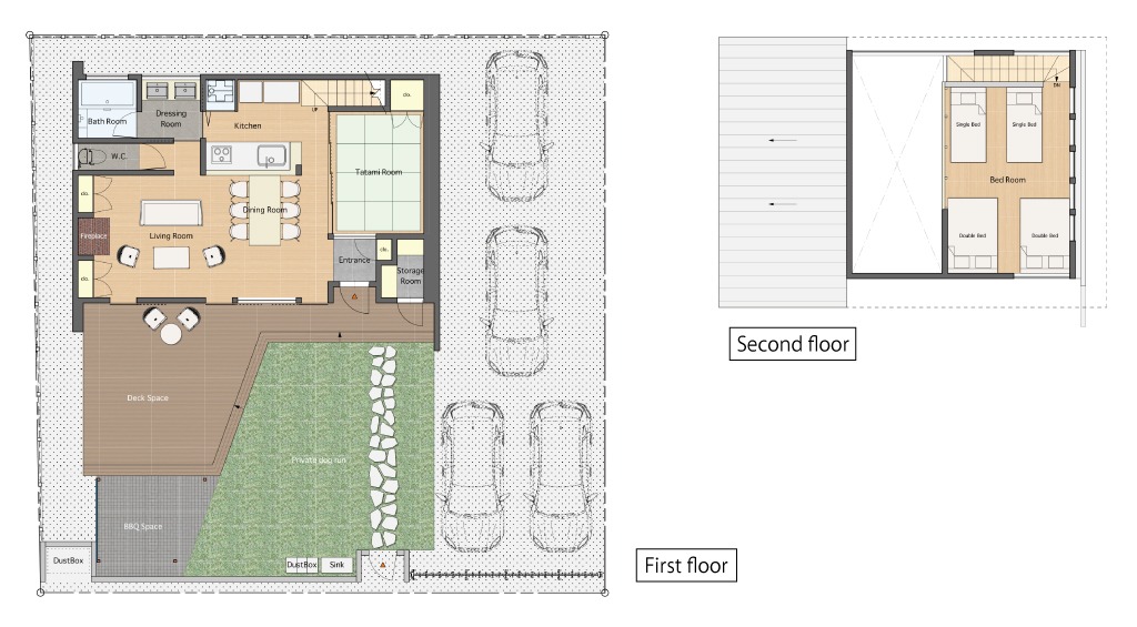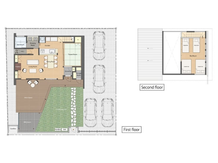 Villa Kotiは、長らく人知れず佇んでいた別荘を建築家・庄司圭介氏がリノベーションし、落ち着きと上質さを兼ね備えた空間へと生まれ変わらせた特別な棟です。秋には目の前に広がる紅葉を存分に楽しめる絶好のロケーション。S-01とS-02の2棟は、デザイン性と快適性を両立させた設計で、四季を通じて心地よい別荘ライフをお届けします。さらに、新築計画により環境基準を満たした室内は、夏は涼しく冬は暖かく過ごせる快適仕様。外には広々としたウッドデッキと屋根付きバーベキュースペースを備え、自然と調和した贅沢なアウトドア体験も楽しめます。