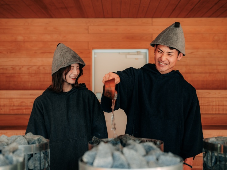 ロウリュを注げば心地よい蒸気が全身を包み込み、贅沢なリラックスへと誘います。