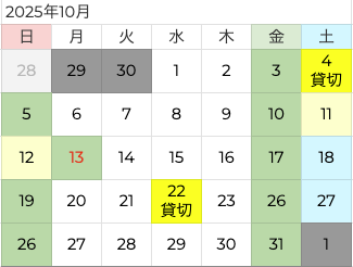 ご予約受付中の料金ランクカレンダーは以下の通りとなっております。