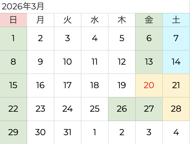 2026年3月分の予約を、2025年10月1日(水)18:00に開始いたしました。