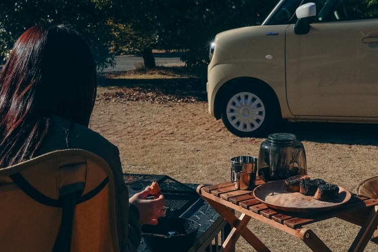 椰子の木に囲まれたオートサイトで、車を横付けしたまま、プライベート焚き火を楽しめる新しいカフェ体験が始まります。