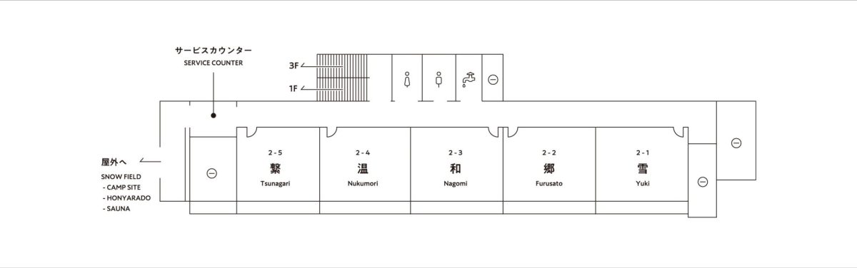 施設1Fに脱衣スペースから個別仕様のシャワーブースを男性用2基、女性用3基ご用意しています。
