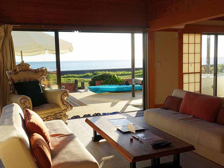 都心から車で約70分。千葉・館山の海辺に佇む「オーシャンリゾート館山」は、1日1組限定の全棟貸切プライベートヴィラ。露天温水ジャグジーやアメリカ製グリル付きのテラスBBQなど、非日常の優雅なひとときをお楽しみいただけます。